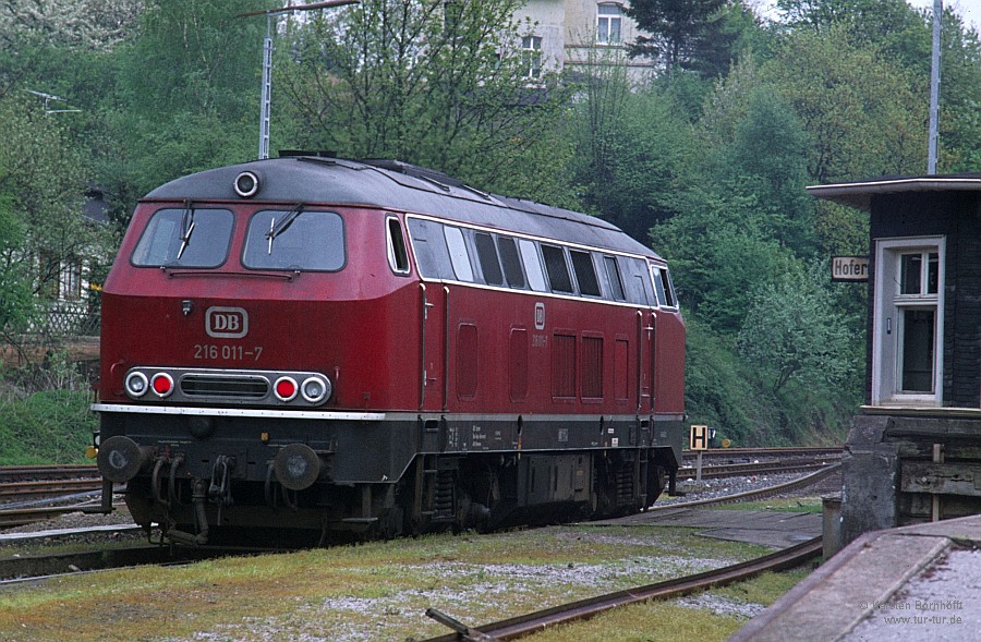 216 011-7 wartet in Hofermühle auf Ausfahrt nach Rohdenhaus.