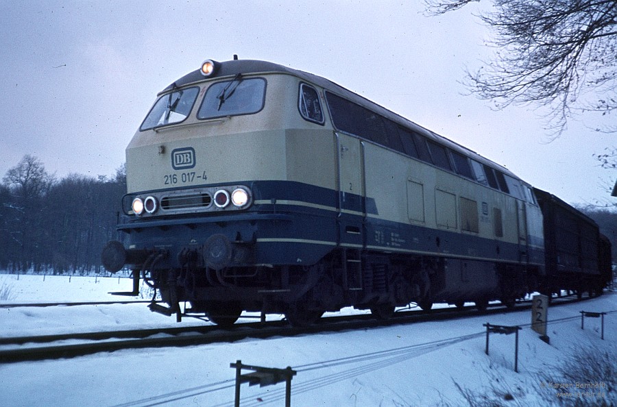 Am 4.12.1980 wartet 216 017-5 am Abzweig Anger auf Ausfahrt nach Rohdenhaus.