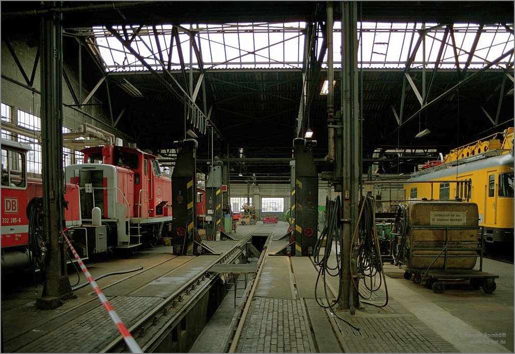 Links stehen 332 285-6, 360 804-9 und 335 187-1 abgestellt, während der Vohwinkeler (!) 702 050-6 rechts im Bild zu Fristarbeiten im Bw Steinbeck steht.