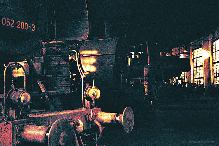 052 200-3 steht neben einer Lok der Reihe 094 und einer weiteren 50er im Lokschuppen des Bw Vohwinkel, 7.11.1971