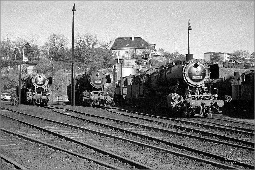 20.10.1968: 50 2761, 50 2557 und 50 2529 sonnen sich am Sonntagmittag an der hinteren Drehscheibe.