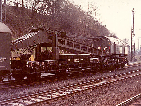 Der Wuppertaler Dampfkran, hier abgestellt auf dem “Schneepfluggleis” am Bahnhof Vohwinkel am 25.3.1967.