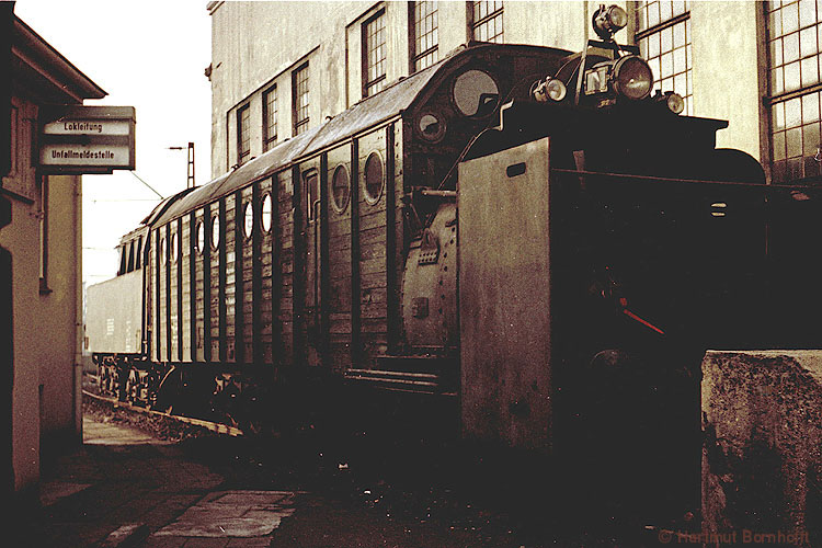Im Bw Wuppertal-Vohwinkel war lange eine Henschel Dampfschneeschleuder stationiert. Das Farbfoto der Wuppertal 6410 wurde am 7.11.1971 im Bw aufgenommen. Diese Schneeschleuder ist heute noch erhalten und befindet sich im Eisenbahnmuseum der DGEG in Neustadt/Weinstraße. |
