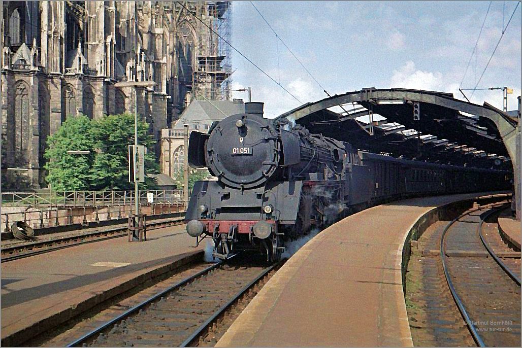 Am 5.8.1967 hat 01 051 vom Bw Trier mit einem Eilzug aus Trier den Kölner Hbf erreicht.