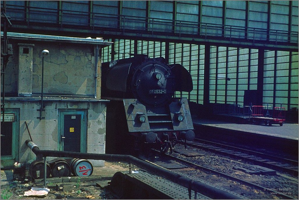 Eins meiner wenigen halbwegs brauchbaren Fotos von Dampfloks der DDR: 01 0532-0 im Bahnhof Berlin-Zoo 1981.