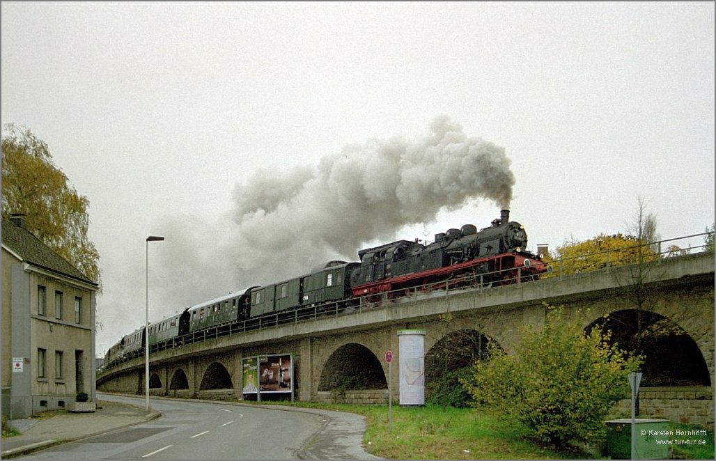 Unten: 78 468 zieht einen Sonderzug im Rahmen des Solinger Brückenfestes in Solingen-Ohligs. (28.10.2000) Nachgeschoben wurde der Zug von 94 1538.
