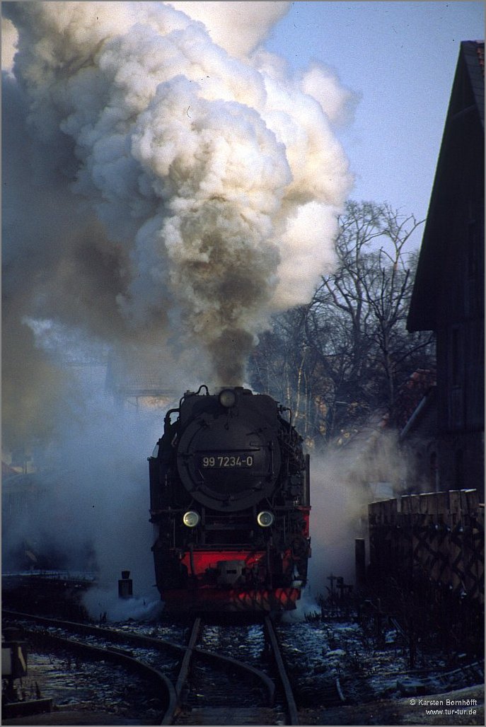 99 7234-0 bei der Ausfahrt aus Wernigerode am 2.1.1993.