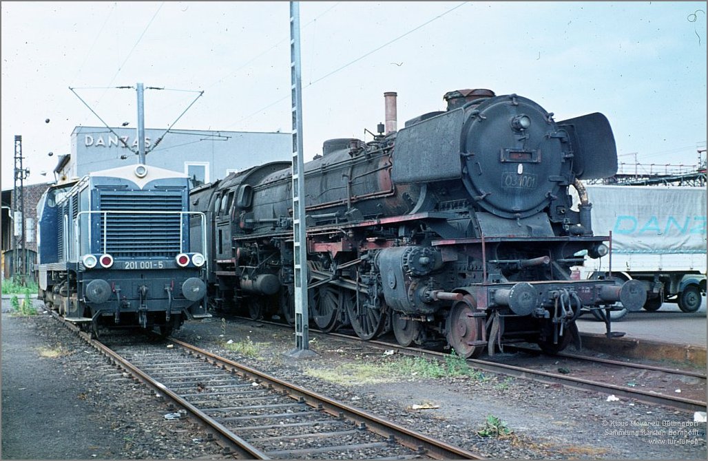 Die Lok im Hintergrund ist übrigens die ausgemusterte 03 1001.