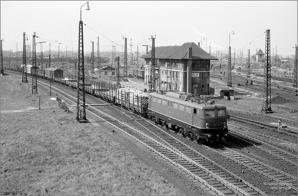 Dieses Foto läßt sich nicht mehr wiederholen: E40 259 am 27.4.1967 bei der Ausfahrt aus dem heute komplett abgerissenen Güterbahnhof Hohenbudberg.