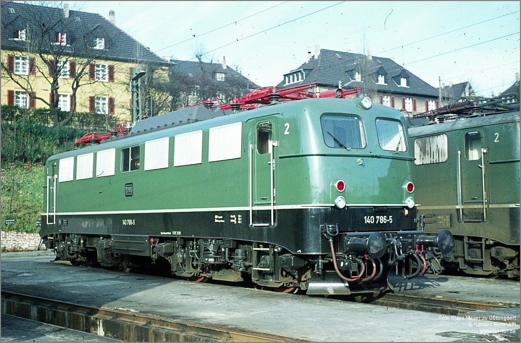 140 786-5 im Winter 1970/1971 im Bw Wuppertal-Vohwinkel aufgenommen. Die Lok wurde am 13.11.1970 fabrikneu beim Bw Hagen-Eckesey in Dienst
