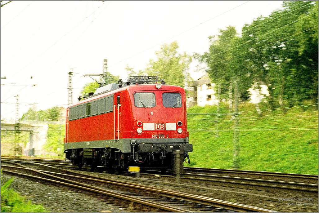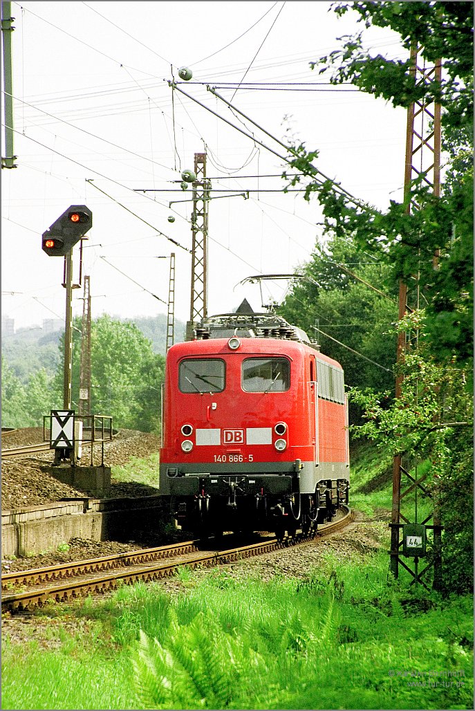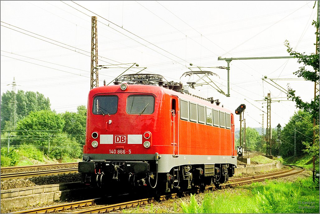 140 866-5 wendete am 21.8.2001 in Gruiten auf einer Werksprobefahrt des AW Opladen.