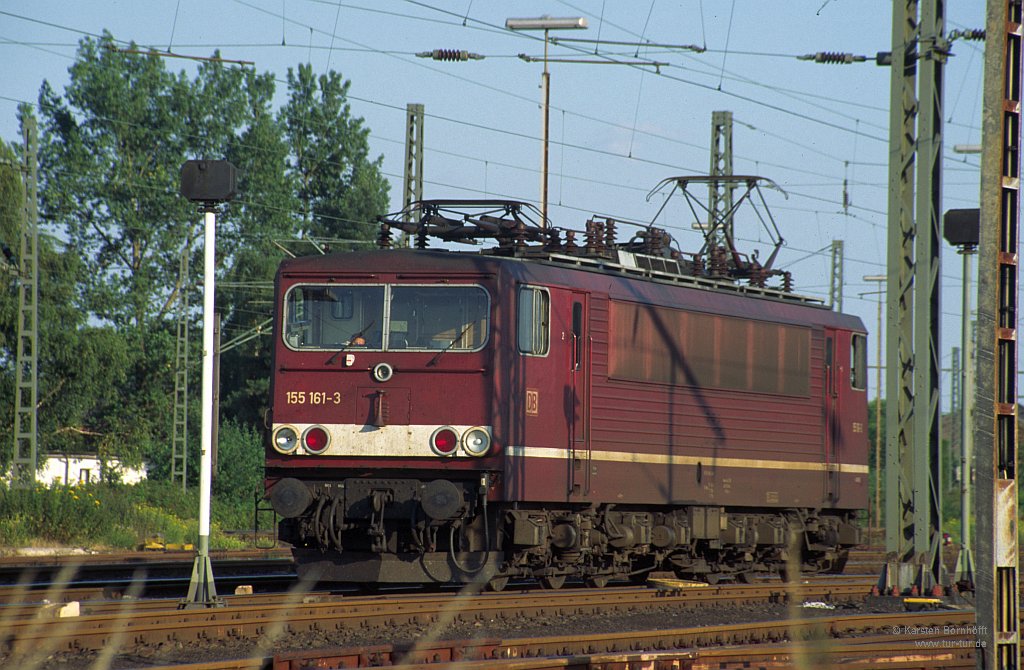 Pause vorbei: Die Mannheimer 155 161-3 fährt nun von Kaldenkirchen nach Venlo, um dort einen Zug in Richtung Basel zu übernehmen. (Kaldenkirchen, 20.7.1996)