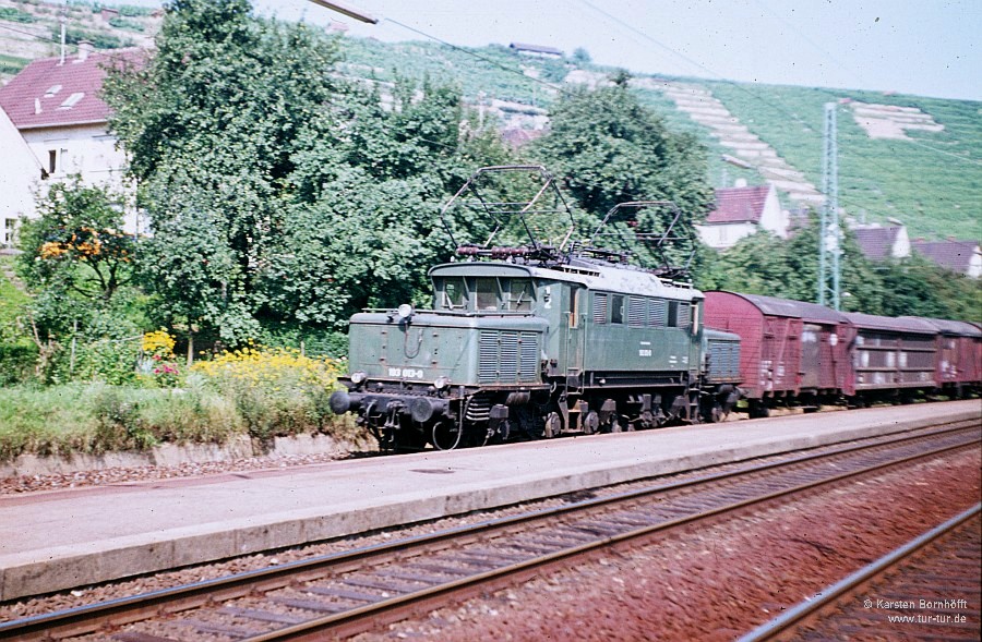 193 013-0 durchfährt aus Heilbronn kommend am 12.8.1982 Besigheim/N. in Richtung Bietigheim-Bissingen.