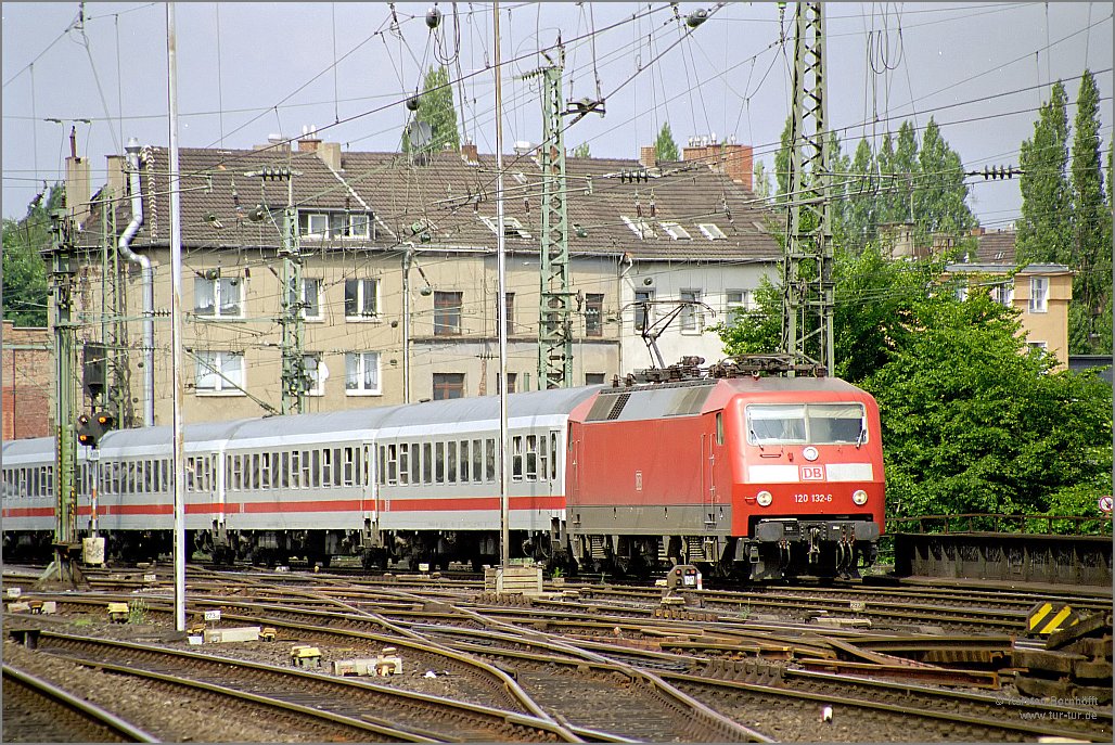 120 132-6 bei der Einfahrt nach Düsseldorf Hbf, 7.6.2003
