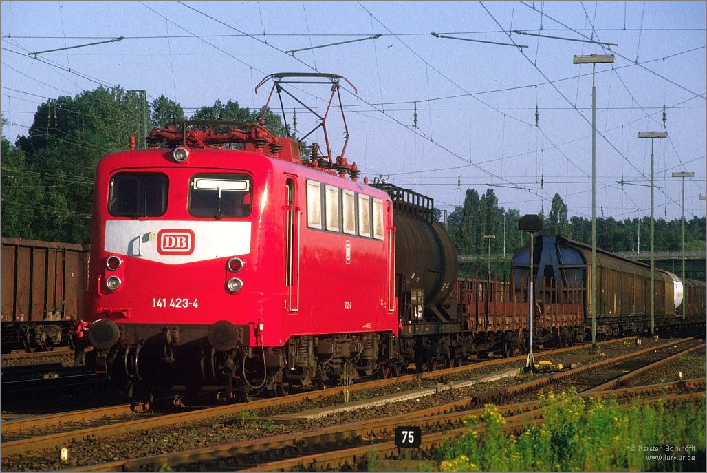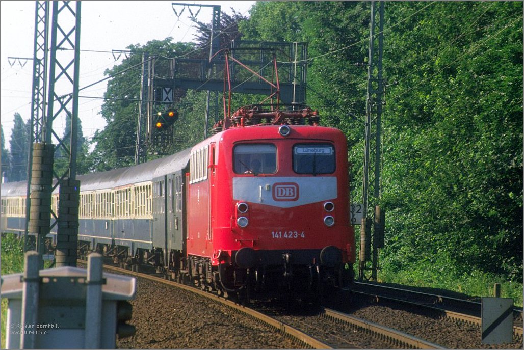 Damals war sie eine der ersten 4 orientrot lackierten 141er: 141 423-4 vom Bw Hamburg-Eidelstedt beförderte im August 1987 zuerst