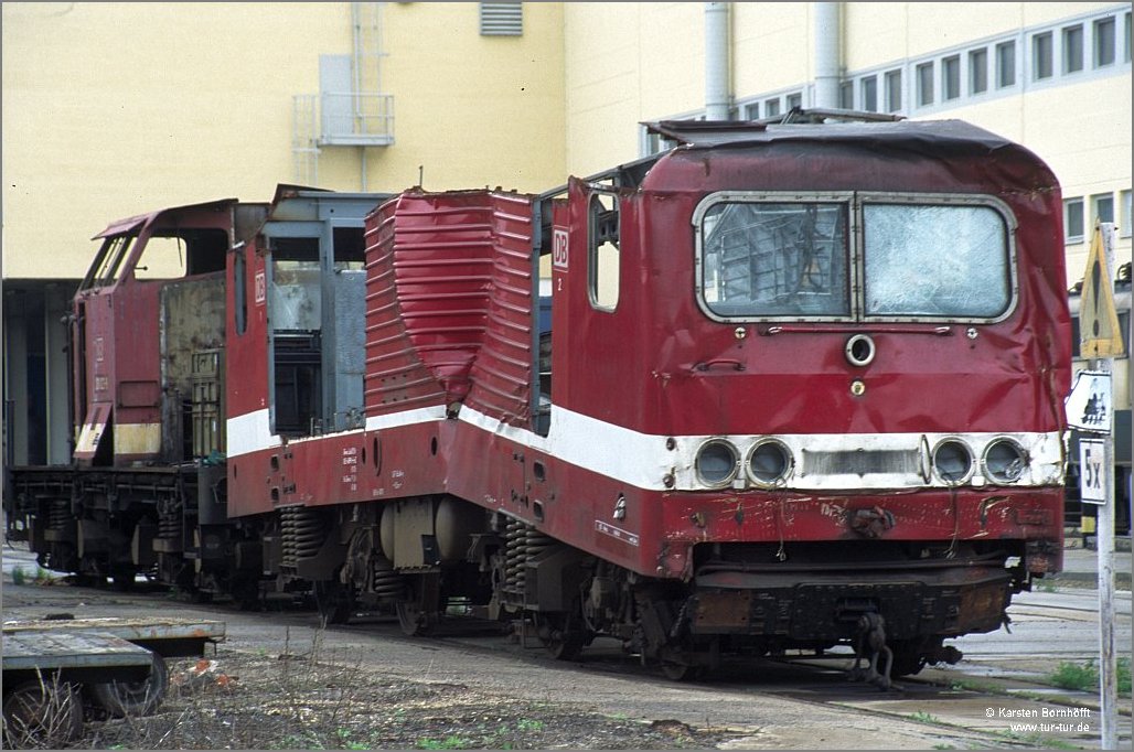 Diese beiden Cottbuser 143er hatten am 1.8.1994 in Bischdorf einen Frontagzusammenstoß, daraufhin wurden beide am 7.8.1994