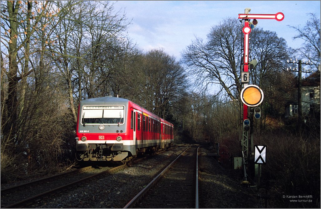 Der 628 661-1/928 661-8 war am 2.1.1999 der letzte DBAG-Triebwagen auf der Strecke Düsseldorf Hbf - Mettmann. Hier fährt er am 31.12.1998 gerade in den Bahnhof Mettmann West.
