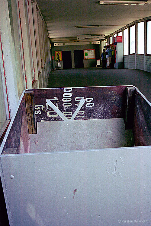 Aus den Seitenwänden eines Gs216 hat man in Wuppertal-Zoologischer Garten diesen Streusalzbehälter gebaut.